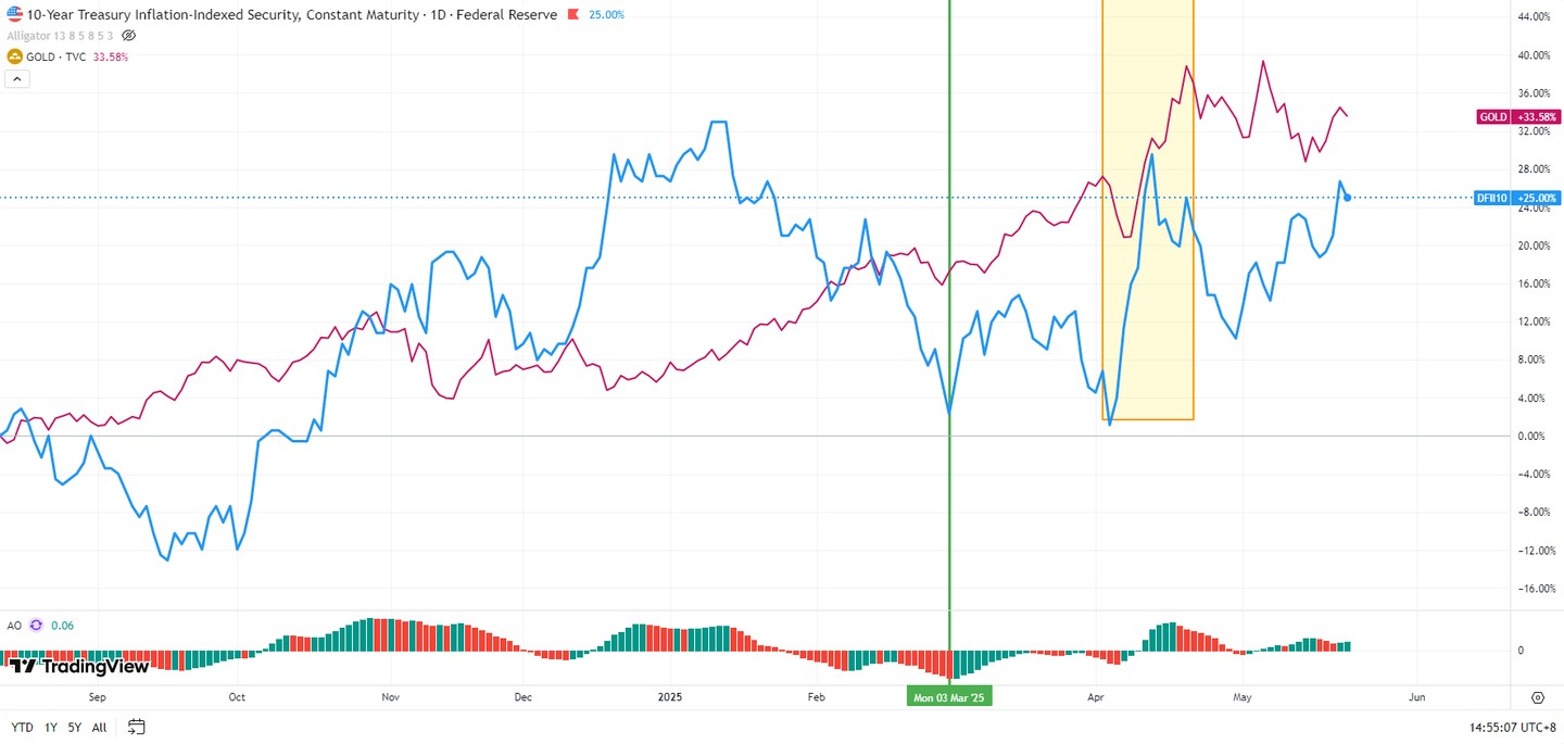 However, since the implementation of equivalent tariffs around early April 2025, gold and U.S. real interest rates have shown a correlated movement, highlighting the market's sell-off of U.S. assets and emphasizing the financial attributes of gold Looking ahead, gold investors may focus on U.S. Treasury supply and inflation prospects. Regarding U.S. Treasury supply, the market is concerned about the U.S. Treasury borrowing for spending under the "beautiful big plan." Issuing more bonds amid weak market demand further lowers bond prices, leading to an increase in borrowing rates for all Americans. This, in turn, raises the interest costs on the $36 trillion debt.