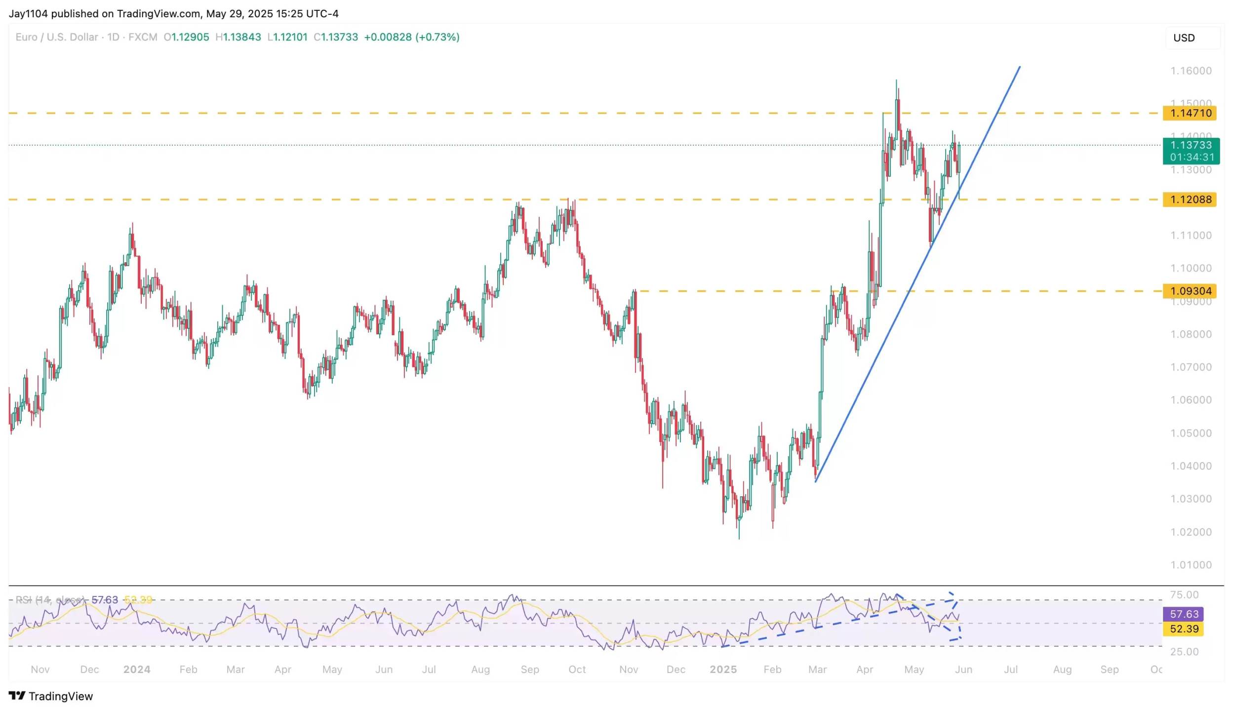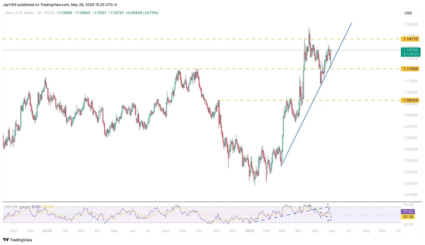 EUR/USD 貨幣對在最近幾周表現出顯著的韌性,並繼續上漲。值得注意的是,該貨幣對再次在 1.12 美元附近找到支撐,同時保持自 3 月初以來建立的上升趨勢。相對強弱指數(RSI)所測得的動能也表明持續的上行偏向。當前的關鍵障礙是突破 1.1470 美元。
