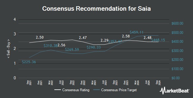 Other research analysts have also recently issued reports about the stock. Susquehanna dropped their price objective on shares of Saia from $540.00 to $410.00 and set a "neutral" rating for the company in a research note on Monday, March 31st. Raymond James set a $310.00 price target on Saia and gave the company an "outperform" rating in a report on Monday, April 28th. Deutsche Bank Aktiengesellschaft cut shares of Saia from a "buy" rating to a "hold" rating and set a $273.00 price objective for the company. in a research note on Thursday, May 1st. TD Cowen boosted their price objective on shares of Saia from $456.00 to $478.00 and gave the company a "hold" rating in a research note on Tuesday, February 4th. Finally, Wall Street Zen raised shares of Saia to a "sell" rating in a research note on Tuesday, May 13th. One research analyst has rated the stock with a sell rating, twelve have given a hold rating and eight have issued a buy rating to the company. Based on data from MarketBeat.com, Saia currently has a consensus rating of "Hold" and an average price target of $338.95.