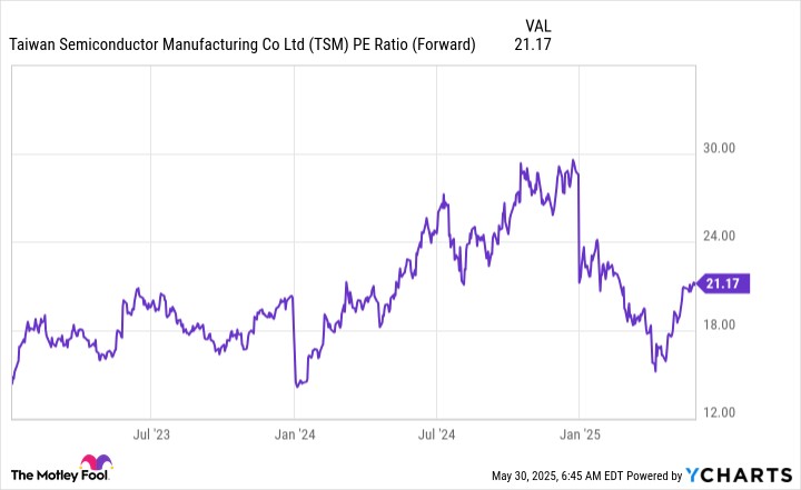To top things off, TSMC's stock isn't all that expensive, trading for 21.2 times forward earnings, versus the S&P 500's (^GSPC 0.58%) 22.1 times forward earnings.
