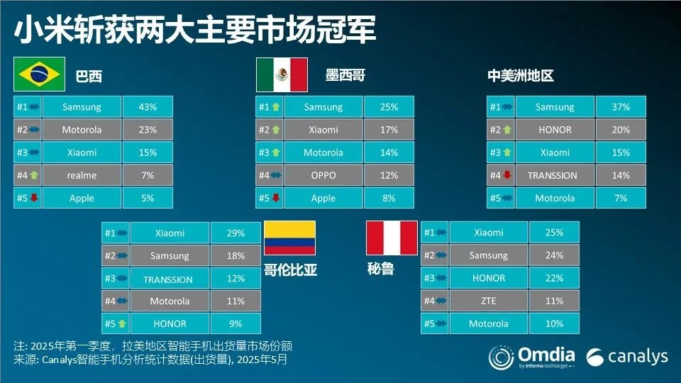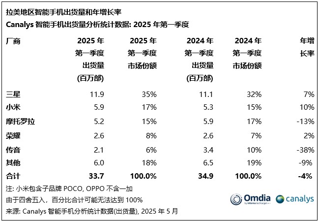 Canalys (Senior Analyst Miguel Pérez stated: "Economic uncertainty, particularly concerns over tariff increases, severely impacted the smartphone market in Latin America in the first quarter of 2025. Manufacturers tightened aggressive sales strategies, retailers reduced inventory, and consumers postponed non-essential device upgrades, extending replacement cycles. This adjustment was expected after manufacturers rapidly expanded into underdeveloped markets such as Central America and Ecuador. Manufacturers are facing a more challenging market environment characterized by weak demand, intensified competition, and rising inventory risks."