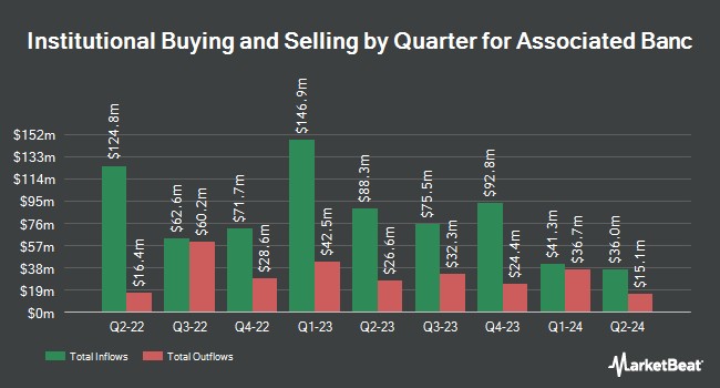 Other large investors have also modified their holdings of the company. Quarry LP grew its stake in shares of Associated Banc by 154.3% during the fourth quarter. Quarry LP now owns 1,073 shares of the bank's stock worth $26,000 after acquiring an additional 651 shares during the last quarter. Covestor Ltd boosted its position in Associated Banc by 221.0% in the fourth quarter. Covestor Ltd now owns 1,499 shares of the bank's stock valued at $36,000 after buying an additional 1,032 shares during the last quarter. Versant Capital Management Inc boosted its position in Associated Banc by 385.5% in the first quarter. Versant Capital Management Inc now owns 1,612 shares of the bank's stock valued at $36,000 after buying an additional 1,280 shares during the last quarter. Smartleaf Asset Management LLC boosted its position in Associated Banc by 49.6% in the fourth quarter. Smartleaf Asset Management LLC now owns 1,747 shares of the bank's stock valued at $42,000 after buying an additional 579 shares during the last quarter. Finally, NewEdge Advisors LLC boosted its position in Associated Banc by 13.1% in the fourth quarter. NewEdge Advisors LLC now owns 3,518 shares of the bank's stock valued at $84,000 after buying an additional 408 shares during the last quarter. Hedge funds and other institutional investors own 82.98% of the company's stock.