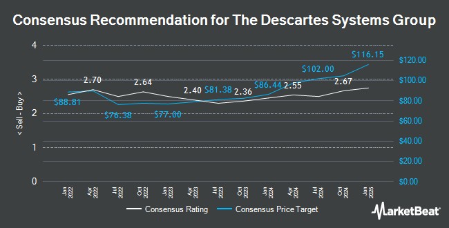 A number of other research firms have also weighed in on DSGX. CIBC reduced their price objective on shares of The Descartes Systems Group from $128.00 to $127.00 and set an "outperform" rating for the company in a research note on Thursday, March 6th. Stephens lowered their price target on shares of The Descartes Systems Group from $137.00 to $125.00 and set an "overweight" rating for the company in a research note on Wednesday, April 9th. Scotiabank boosted their price target on shares of The Descartes Systems Group from $125.00 to $127.00 and gave the stock a "sector outperform" rating in a research note on Wednesday, March 26th. BMO Capital Markets lowered their price target on shares of The Descartes Systems Group from $120.00 to $113.00 and set a "market perform" rating for the company in a research note on Thursday, March 6th. Finally, Barclays decreased their price objective on shares of The Descartes Systems Group from $118.00 to $108.00 and set an "equal weight" rating on the stock in a research report on Thursday. Three research analysts have rated the stock with a hold rating, eight have issued a buy rating and one has issued a strong buy rating to the company. According to MarketBeat, The Descartes Systems Group presently has a consensus rating of "Moderate Buy" and an average price target of $123.40.