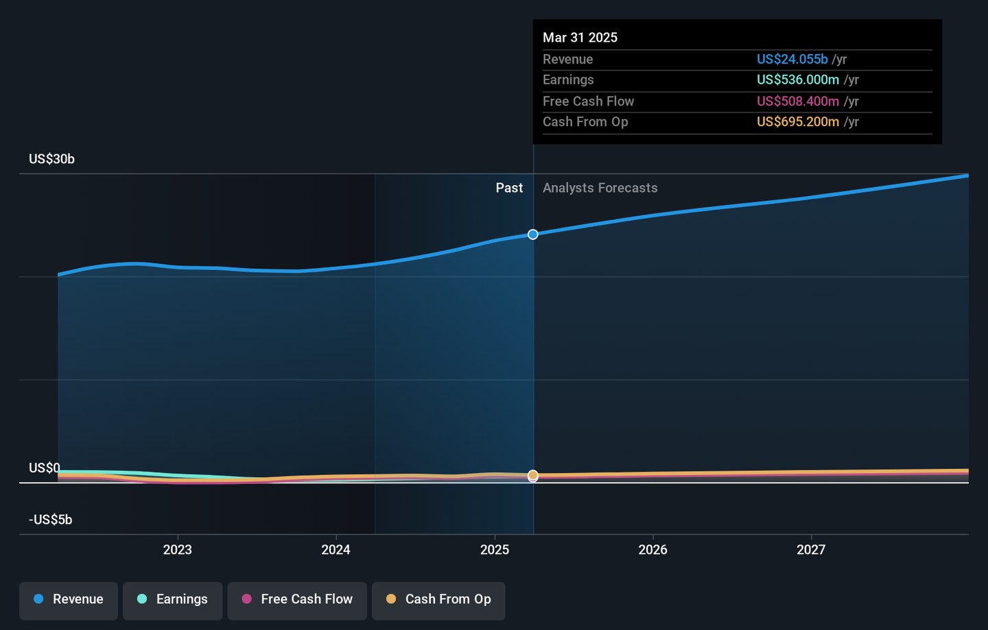 Jones Lang LaSalle Incorporated (NYSE:JLL) has experienced a share price increase of over 10% recently, yet it remains undervalued compared to its industry peers, with a price-to-earnings ratio of 21.12x versus the industry average of 29.24x. Analysts predict an 82% profit growth in the coming years, suggesting a positive outlook for the stock. Current shareholders may consider increasing their holdings, while potential investors might find it an opportune time to buy, as the stock's future growth potential is not fully reflected in its current price.