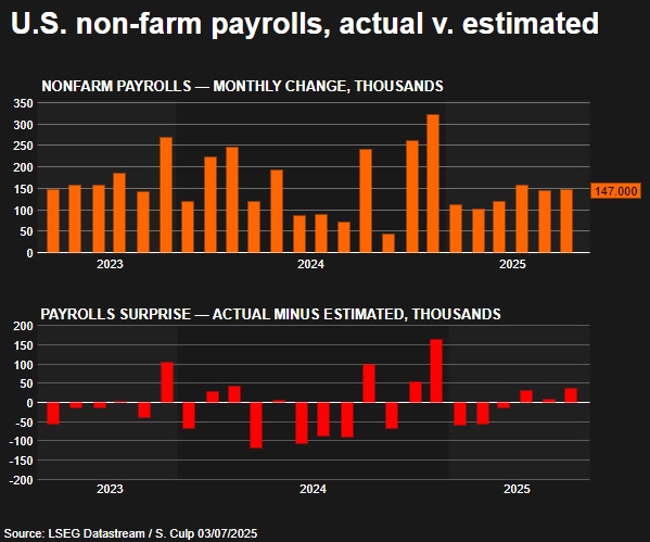 The rally has been fueled by retail investors, who are largely ignoring the inflationary pressure on the horizon, uncertainty around tariffs and “are focused on the tangible, which is today’s jobs report,” she said.
