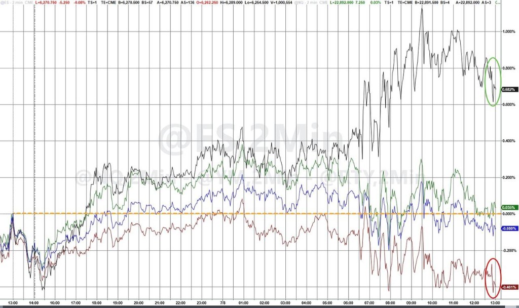 美股盤前,據央視新聞報道,當地時間 7 月 7 日美國總統特朗普簽署行政命令,將關税暫緩期截止日期從 7 月 9 日推遲到 8 月 1 日。報道稱,特朗普表示如果有國家提出了不同的方案,他會對其他想法持開放態度。美股三大指數開盤漲跌不一,道指跌 0.1%,納指漲 0.3%。
