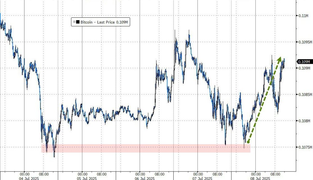 紐約尾盤,現貨比特幣報 108629,漲幅 0.69%。