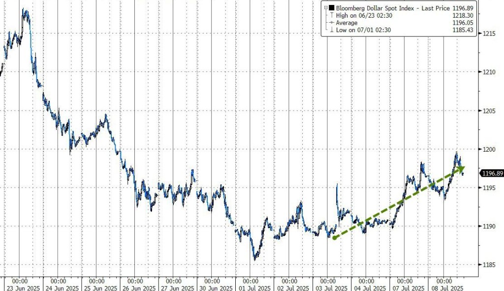 彭博美元指數跌 0.01%,報 1196.34 點,日內交投區間為 1193.28-1199.72 點。