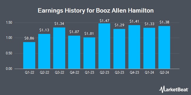 Booz Allen Hamilton (NYSE:BAH - Get Free Report) last announced its quarterly earnings results on Friday, May 23rd. The business services provider reported $1.61 earnings per share (EPS) for the quarter, beating the consensus estimate of $1.59 by $0.02. The firm had revenue of $2.97 billion during the quarter, compared to the consensus estimate of $3.03 billion. Booz Allen Hamilton had a return on equity of 72.35% and a net margin of 7.81%. The firm's quarterly revenue was up 7.3% compared to the same quarter last year. During the same period in the prior year, the firm earned $1.33 EPS. On average, analysts expect Booz Allen Hamilton to post $6 EPS for the current fiscal year and $7 EPS for the next fiscal year.