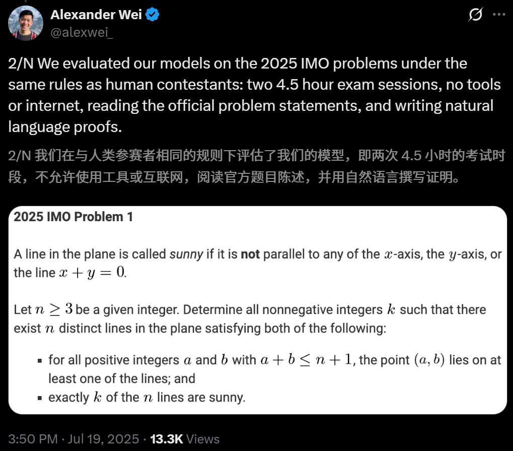 Alexander Wei 和他的團隊,讓模型在與人類完全相同的條件下進行比賽: