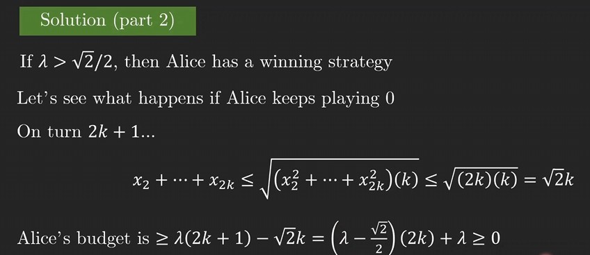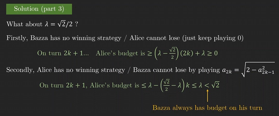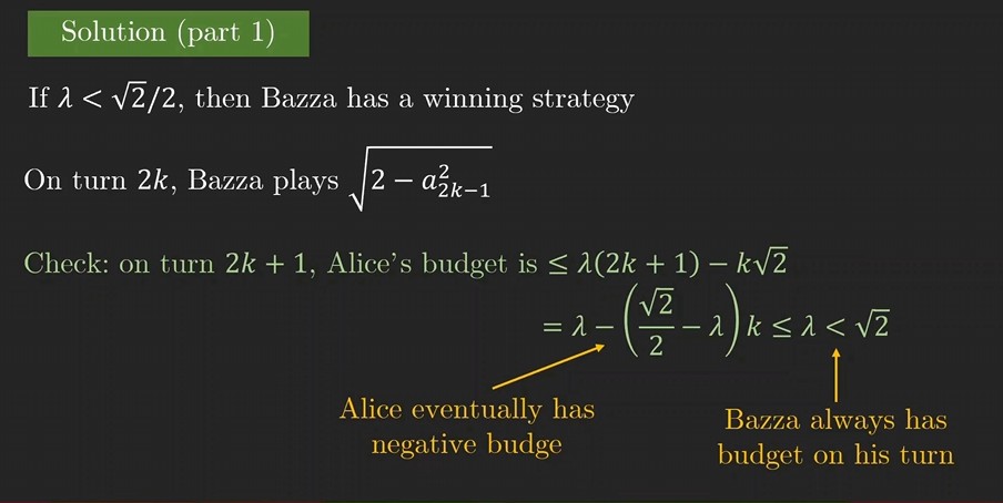 當 λ < c(c = 1/√2)時,Bazza 獲勝。