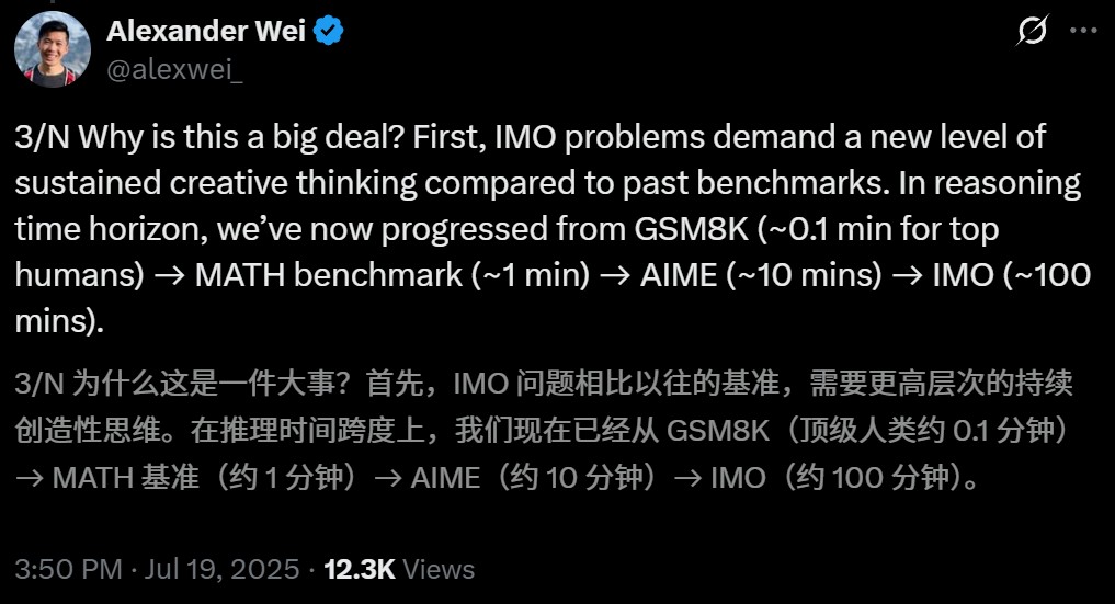 對此,德撲之父 Noam Brown 表示,這個成績的意義甚至超越了「AI 攻克 IMO」本身。