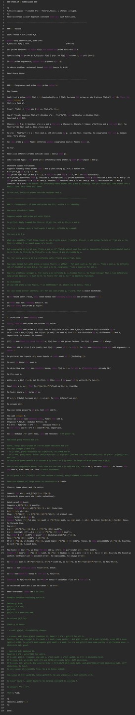 推論:如果某個奇素數 p 滿足 f>1,那麼整個函數 f 必須是恆等函數。