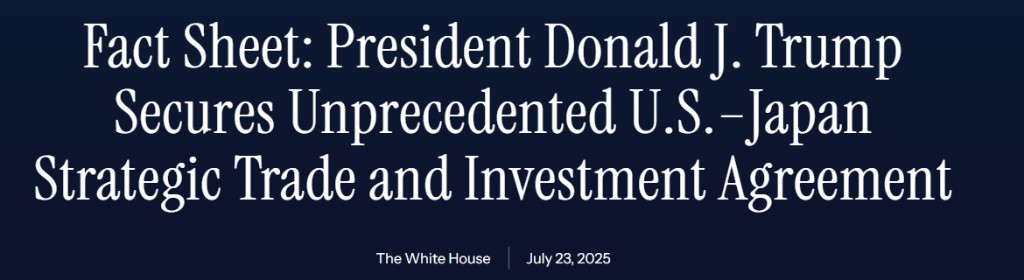 The White House confirmed that Japan will invest $550 billion in the United States through a newly established investment fund, marking the largest foreign investment commitment received by any country to date. Japan will immediately increase its import quota for U.S. rice by 75% under a zero-tariff minimum market access framework. U.S. automobiles will no longer be subject to long-standing restrictions and will be able to enter the Japanese consumer market, and U.S. automotive standards will also be recognized in Japan for the first time