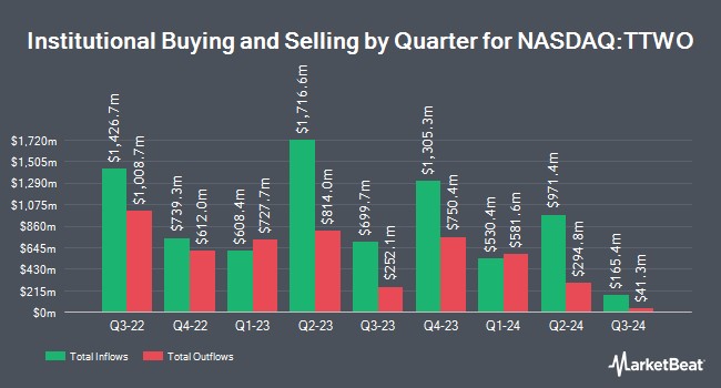 Several other hedge funds have also added to or reduced their stakes in the stock. Massachusetts Financial Services Co. MA raised its position in shares of Take-Two Interactive Software by 1.7% in the first quarter. Massachusetts Financial Services Co. MA now owns 5,358,309 shares of the company's stock valued at $1,110,510,000 after purchasing an additional 89,093 shares during the period. Capital International Investors raised its position in shares of Take-Two Interactive Software by 9.5% in the fourth quarter. Capital International Investors now owns 4,883,746 shares of the company's stock valued at $899,036,000 after purchasing an additional 424,893 shares during the period. Ameriprise Financial Inc. raised its position in shares of Take-Two Interactive Software by 0.3% in the fourth quarter. Ameriprise Financial Inc. now owns 4,770,044 shares of the company's stock valued at $878,567,000 after purchasing an additional 13,555 shares during the period. UBS AM a distinct business unit of UBS ASSET MANAGEMENT AMERICAS LLC raised its position in shares of Take-Two Interactive Software by 6.8% in the fourth quarter. UBS AM a distinct business unit of UBS ASSET MANAGEMENT AMERICAS LLC now owns 4,527,759 shares of the company's stock valued at $833,470,000 after purchasing an additional 287,194 shares during the period. Finally, Geode Capital Management LLC raised its position in shares of Take-Two Interactive Software by 2.5% in the fourth quarter. Geode Capital Management LLC now owns 4,110,469 shares of the company's stock valued at $754,671,000 after purchasing an additional 99,279 shares during the period. Institutional investors own 95.46% of the company's stock.