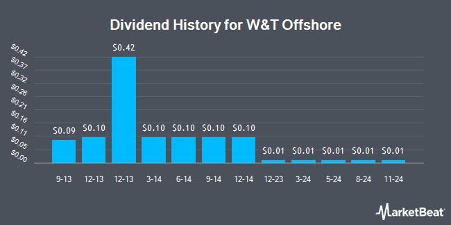W&T Offshore, Inc. (NYSE:WTI - Get Free Report) declared a quarterly dividend on Tuesday, August 5th, Wall Street Journal reports. Shareholders of record on Monday, August 18th will be paid a dividend of 0.01 per share by the oil and gas company on Monday, August 25th. This represents a c) annualized dividend and a yield of 2.3%. The ex-dividend date is Monday, August 18th.