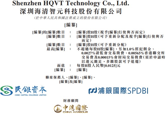 According to the Hong Kong Stock Exchange's disclosure on August 6, Shenzhen Haiqing Zhiyuan Technology Co., Ltd. (referred to as: Haiqing Zhiyuan) has submitted a listing application to the main board of the Hong Kong Stock Exchange, with Minyin Capital and Pudong Development Bank International as its joint sponsors.