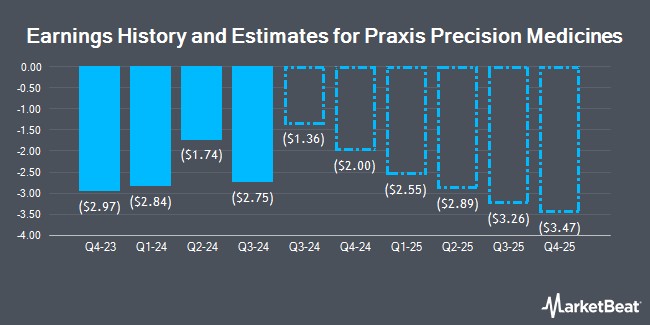 Praxis Precision Medicines, Inc. (NASDAQ:PRAX - Free Report) - Equities researchers at HC Wainwright lowered their FY2029 earnings per share estimates for shares of Praxis Precision Medicines in a research report issued on Tuesday, August 5th. HC Wainwright analyst D. Tsao now anticipates that the company will post earnings per share of $21.43 for the year, down from their prior estimate of $22.65. HC Wainwright currently has a "Buy" rating and a $115.00 price objective on the stock. The consensus estimate for Praxis Precision Medicines' current full-year earnings is ($10.22) per share.