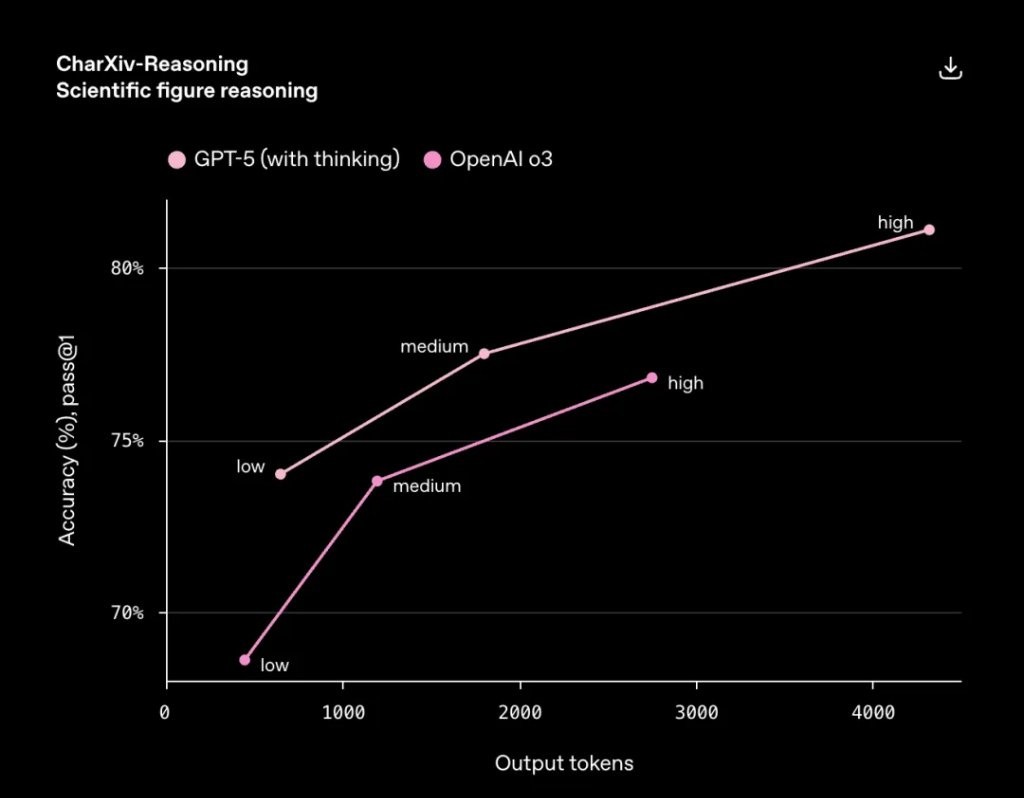 According to OpenAI's introduction, GPT-5 thinking can reduce the number of tokens used by 50%-80% when solving complex problems.