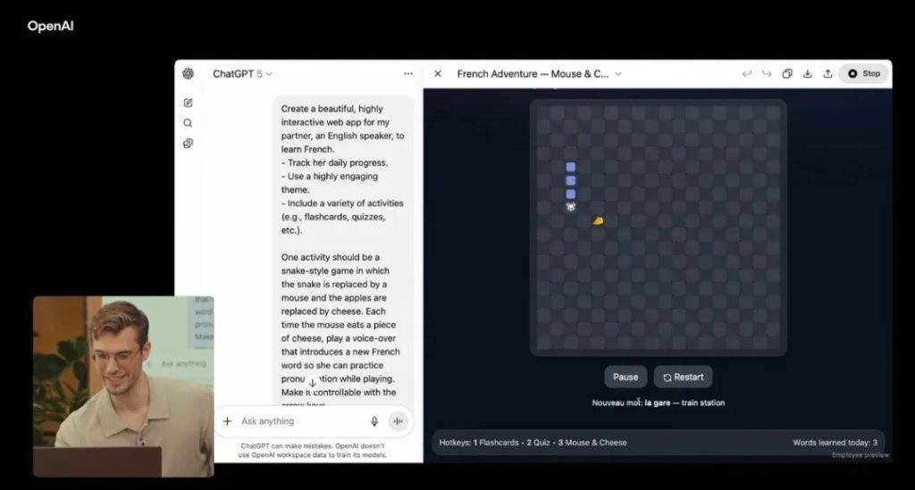 In addition, during the demonstration, only the castle mini-game generated by GPT-5's Cursor at the end was somewhat impressive. All other presentations were lengthy, overly technical, and yielded mediocre results.