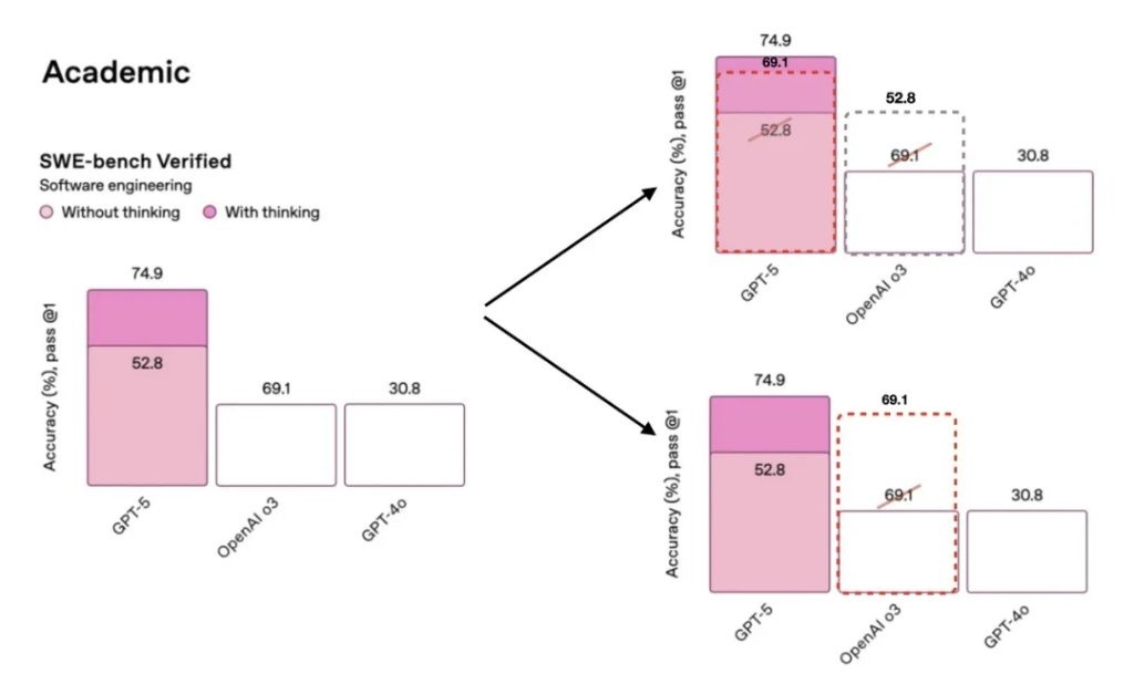 In terms of intelligence level, GPT-5 surpasses o3 in various mainstream evaluation sets, but the overall gap is not very large.