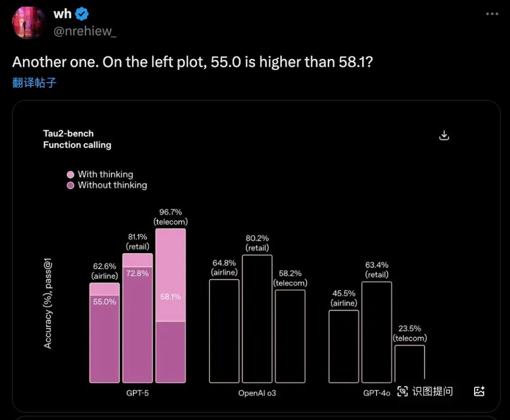 First, there was "chart fraud" during the conference. Shortly after the conference began, sharp-eyed netizens discovered that the SWE Benchmark data was presented in a disproportionate manner to highlight the improvements of GPT-5.