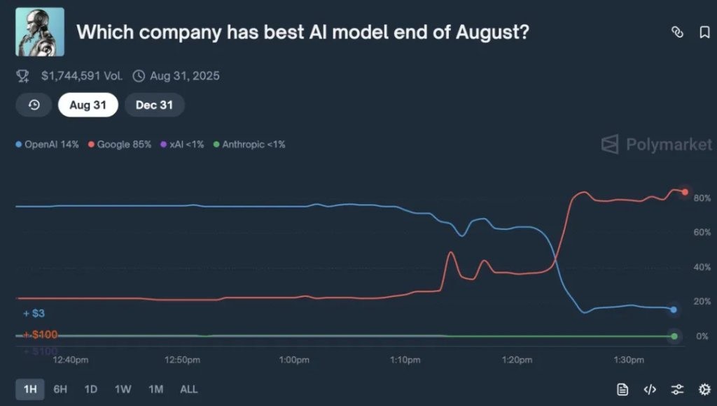 It was precisely because Ultraman set high expectations before the event by stating "GPT-5 is even stronger than me," and the contrast with the bland performance during the presentation, along with the continuous errors, that OpenAI was clearly backfired by public opinion. According to a Polymarkt survey, after the event, people's evaluations of OpenAI's model capabilities even declined.