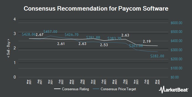 Several other research analysts also recently weighed in on PAYC. Stifel Nicolaus boosted their target price on Paycom Software from $187.00 to $215.00 and gave the stock a "hold" rating in a research note on Thursday, May 8th. BMO Capital Markets upped their target price on shares of Paycom Software from $244.00 to $258.00 and gave the stock a "market perform" rating in a research report on Thursday. Needham & Company LLC reissued a "hold" rating on shares of Paycom Software in a research report on Thursday, May 8th. KeyCorp boosted their target price on Paycom Software from $245.00 to $270.00 and gave the stock an "overweight" rating in a research report on Thursday, May 8th. Finally, Piper Sandler upped their price target on shares of Paycom Software from $224.00 to $246.00 and gave the company a "neutral" rating in a research note on Thursday, May 8th. Eleven investment analysts have rated the stock with a hold rating and one has issued a buy rating to the company's stock. According to MarketBeat, the stock presently has an average rating of "Hold" and a consensus price target of $229.30.