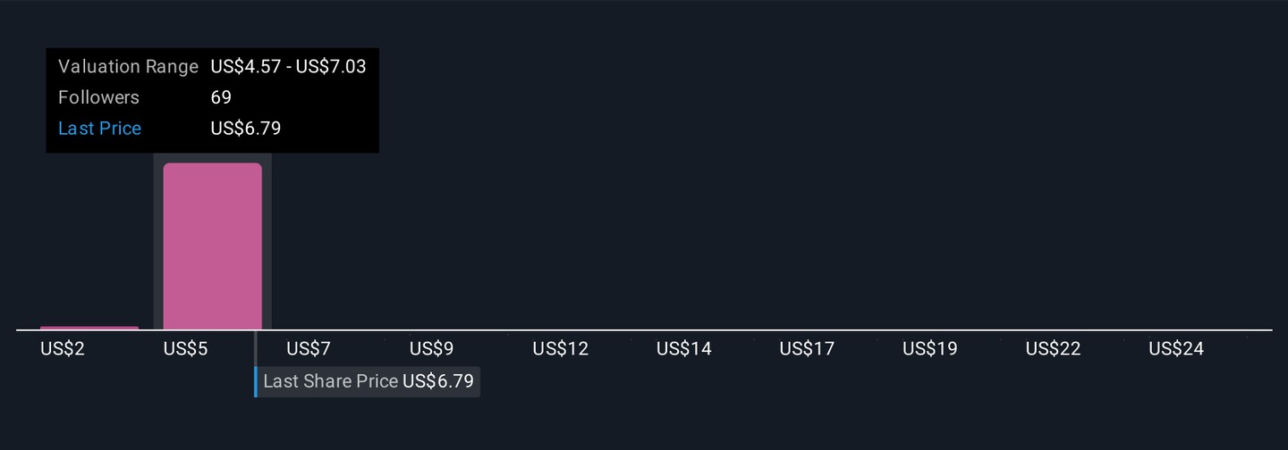 Ten fair value estimates from the Simply Wall St Community range from US$2.10 to US$26.76 per share. While some see significant upside, market consensus continues to highlight the major risk of persistent revenue declines and ongoing cash burn during the portfolio shift, reminding you to consider these opposing views.