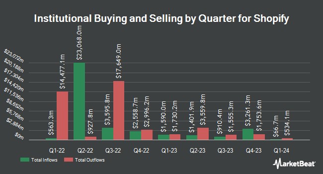 其他幾家對沖基金最近也買賣了該公司的股票。Capital World Investors 在第四季度將其在 Shopify 的持倉增加了 0.9%。Capital World Investors 現在擁有 53,102,707 股該軟件製造商的股票,價值 5,646,455,000 美元,在上個季度額外購買了 496,982 股。先鋒集團在第一季度將其在 Shopify 的股份增加了 1.9%。先鋒集團現在擁有 47,962,280 股該軟件製造商的股票,價值 4,563,106,000 美元,在上個季度額外收購了 882,168 股。Capital International Investors 在第四季度將其在 Shopify 的股份增加了 2.7%。Capital International Investors 現在擁有 36,516,305 股該軟件製造商的股票,價值 3,883,039,000 美元,在上個季度額外收購了 968,026 股。麥肯齊金融公司在第一季度將其在 Shopify 的股份增加了 19.7%。麥肯齊金融公司現在擁有 8,648,734 股該軟件製造商的股票,價值 822,745,000 美元,在上個季度額外收購了 1,426,406 股。最後,Nuveen LLC 在第一季度購買了 Shopify 的新股份,價值約 667,392,000 美元。69.27% 的股票由機構投資者和對沖基金持有。