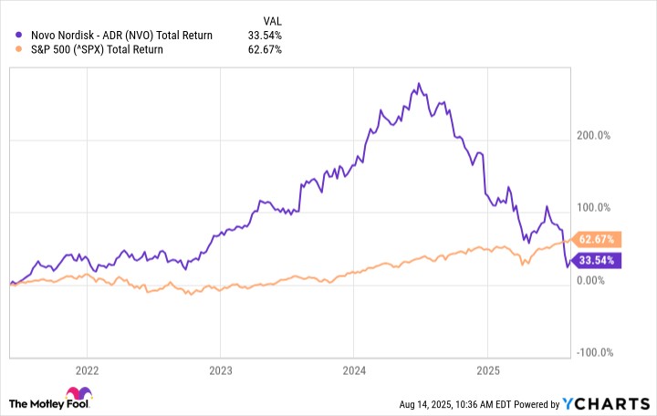 Novo Nordisk (NVO 2.88%) first earned U.S. approval for its now-famous weight management medicine Wegovy in June 2021. That marked the beginning of a strong run for the company on the stock market. However, the Denmark-based drugmaker has given up most of these gains over the past year; the stock is down by 40% since January alone.
