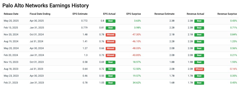 Street estimates have baked in an EPS of about $0.89, up roughly 17% from a year ago, and revenue near $2.5 billion, roughly +14% year-over-year. Those figures line up with consensus data and sit against a notable streak: Palo Alto has topped EPS estimates in each of the last nine quarters.