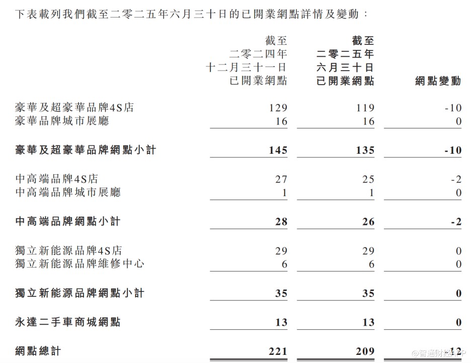 In terms of improving single-store operational quality, YONGDA AUTO promotes network optimization and efficiency enhancement. In the first half of the year, the company accelerated the closure and transfer of non-core brand and non-core area stores, closing a total of 19 stores (including 12 traditional brands and 7 new energy brands), concentrating resources on developing more promising leading brands. It established 7 new leading new energy stores (including 5 Hongmeng Zhixing outlets), added 30 new energy brand authorizations, and is planning to establish 14 new energy stores (13 of which are Hongmeng Zhixing) As of the end of June, the total number of operational outlets of the company reached 209, with luxury brands accounting for 64.6% and independent new energy brands accounting for 16.7%, further enhancing brand concentration.