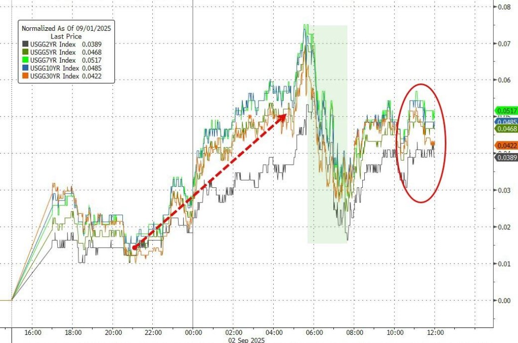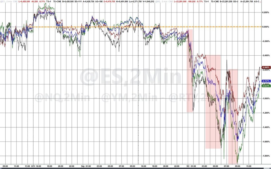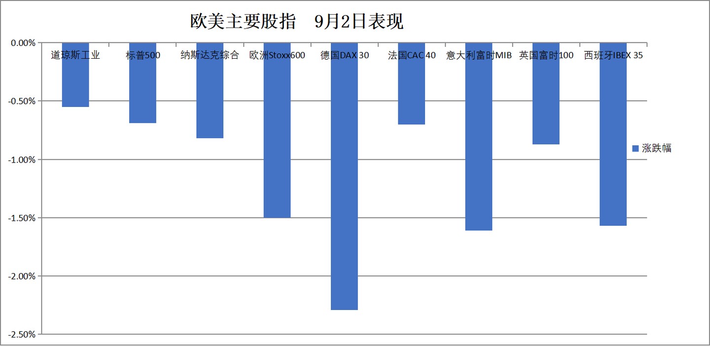 On Tuesday, September 2, U.S. stock index futures fell, European stocks opened lower, gold and silver surged, the dollar rose, U.S. Treasury yields steepened, and oil prices increased.