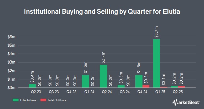 Several other institutional investors have also added to or reduced their stakes in ELUT. OMERS ADMINISTRATION Corp acquired a new stake in shares of Elutia during the 1st quarter worth approximately $28,000. Arcus Capital Partners LLC acquired a new position in shares of Elutia during the first quarter worth approximately $51,000. Northern Trust Corp raised its position in Elutia by 30.0% in the 4th quarter. Northern Trust Corp now owns 17,957 shares of the company's stock valued at $67,000 after buying an additional 4,148 shares during the last quarter. Citadel Advisors LLC purchased a new stake in Elutia in the 4th quarter valued at $84,000. Finally, Millennium Management LLC raised its position in Elutia by 16.4% in the 4th quarter. Millennium Management LLC now owns 45,217 shares of the company's stock valued at $169,000 after buying an additional 6,386 shares during the last quarter. 74.03% of the stock is currently owned by institutional investors.