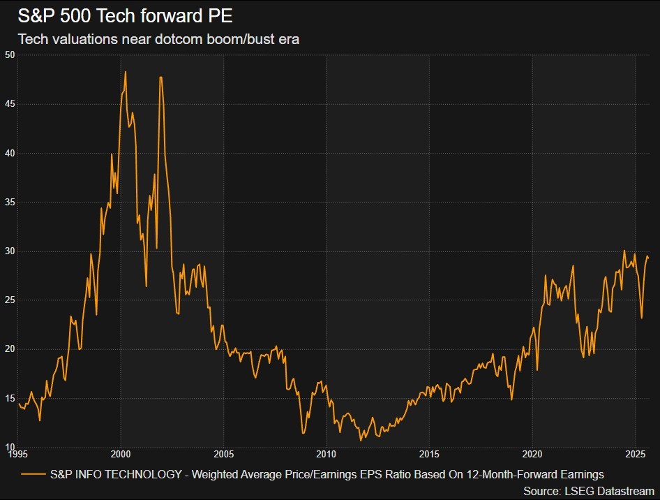 這是一個困擾華爾街幾個月的問題,因為人工智能的狂熱幫助標準普爾 500 和以科技為主的納斯達克幾乎每天都創下新高,輕鬆應對圍繞關税、華盛頓政治和美聯儲獨立性所帶來的混亂和不確定性。
