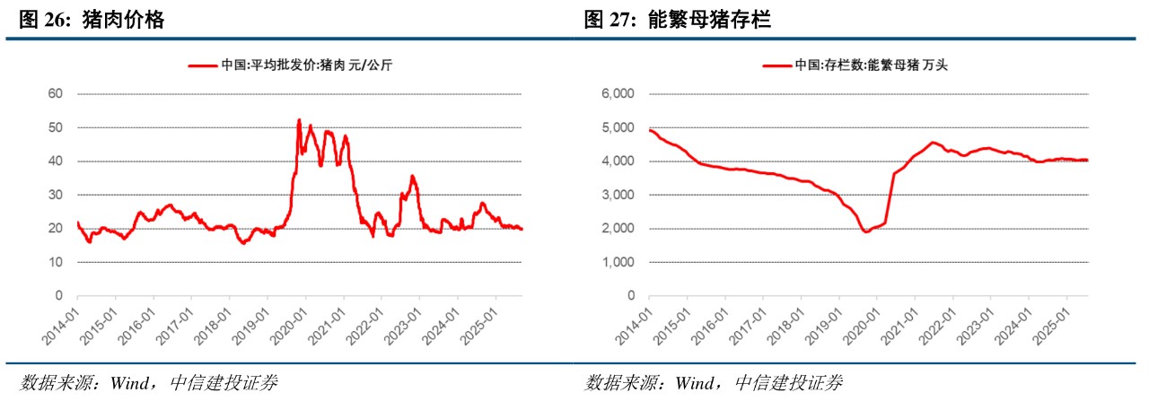 政策強力調控,生豬產能去化成核心抓手。8 月 10 日,農業農村部表示當前生豬產能偏高,引導調減百萬頭能繁母豬;8 月 26 日,中央儲備凍豬肉 15400 噸;9 月 16 日,農業農村部會同發改委擬在北京召開生豬產能調控企業座談會,後續生豬供需和豬肉價格情況有望改善。