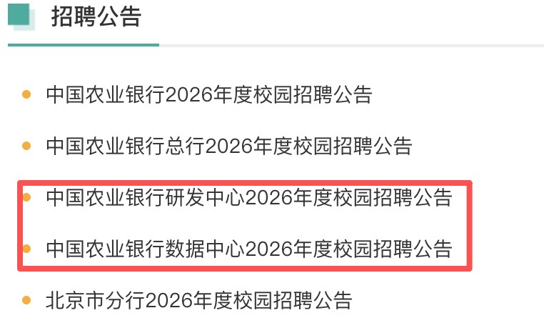 农业银行则单列了研发中心和数据中心两项招聘公告。