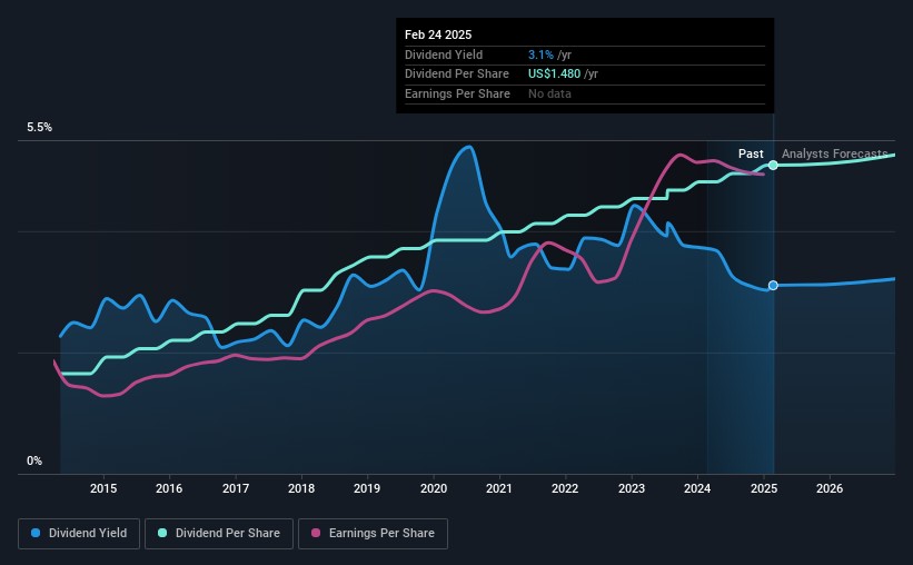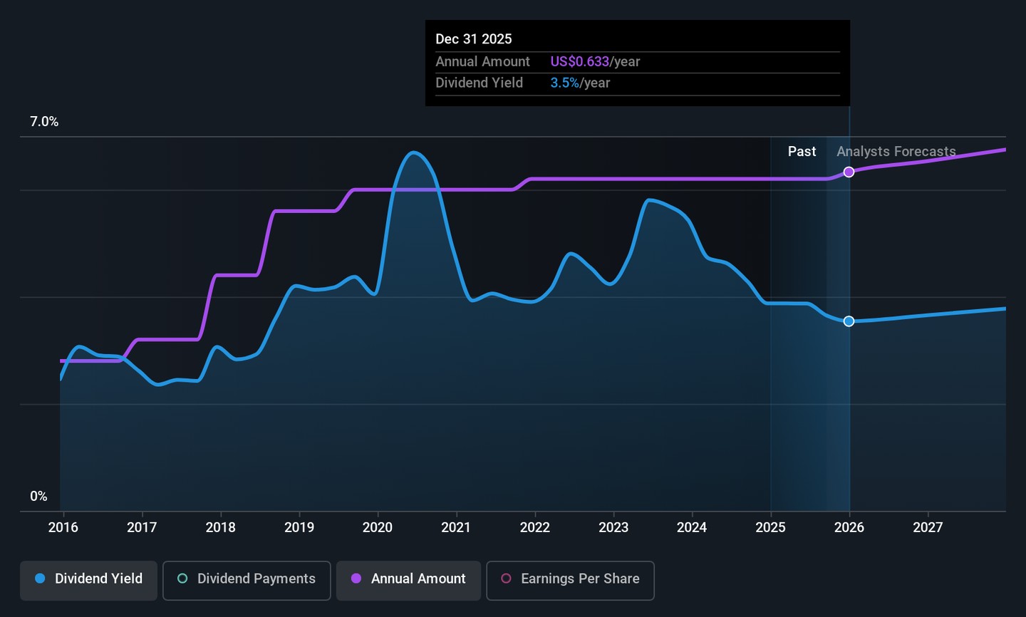 Huntington Bancshares 展示了穩定的股息歷史,過去十年支付可靠,支持其 45.4% 的合理派息比率。儘管其 3.47% 的收益率低於美國市場的前四分之一,但股息一直在持續增加。最近 28.5% 的盈利增長支撐了財務穩定,預計未來股息將由 40.2% 的預測派息比率良好覆蓋,增強了其對收入導向投資者的吸引力。