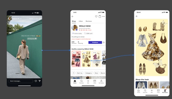 Depop has launched a new styling and collaging tool called "Outfits," allowing users to create and share fashion collages. This feature offers customization options and shoppable items, aiming to engage its Gen Z audience. Users can share their creations on social media platforms. The announcement follows Etsy's Q2 2025 earnings, showing Depop's Gross Merchandise Sales increased by 34.7% year-over-year, positioning it for a $1 billion GMS run rate, compared to rival Mercari's $728 million GMV in Q4 2024.
