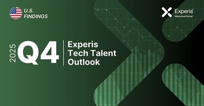 , /PRNewswire/ -- 與去年相比,美國科技招聘正在降温,但仍然是勞動市場的亮點之一。根據 Experis 最新的科技人才展望,2025 年第四季度,美國科技僱主報告的淨就業展望(NEO)為 46%——比第三季度下降了兩個百分點,比去年同期下降了四個百分點,但仍高於全球平均水平(36%)十個百分點,並且在全球招聘展望中名列前茅。