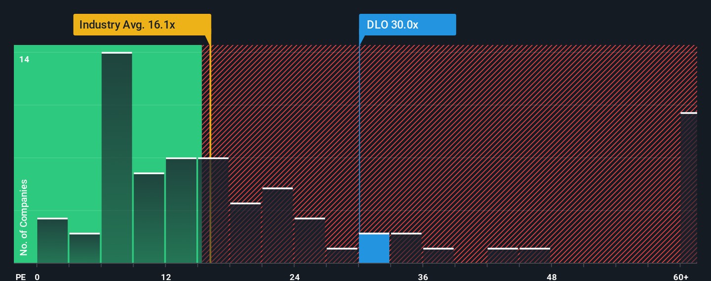 截至 2025 年 10 月的納斯達克股票代碼:DLO 市盈率