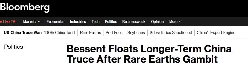 FX168 Financial News Agency (Asia-Pacific) reported on Thursday (October 16) that U.S. Treasury Secretary Scott Bessent hinted that if China stops implementing strict new rare earth export control plans, the U.S. may extend the deadline for imposing import tariffs on Chinese goods for more than three months.
