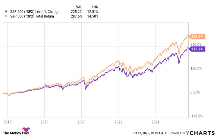 The S&P 500 has historically averaged annualized returns of around 10% over the long term. Over the past decade, its returns have been even more impressive, averaging 12.5% -- and 14.5% when including reinvested dividends.
