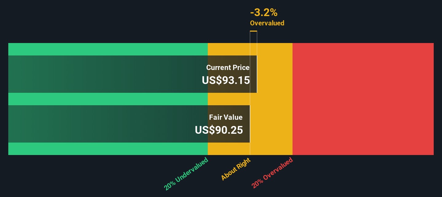 品尼高西方資本最後的收盤價為 93.15 美元,略低於最受歡迎的敍述的公允價值估計 94.92 美元。這突顯了對亞利桑那州增長前景的持續信心,儘管在當前價格下潛在的上漲空間有限。