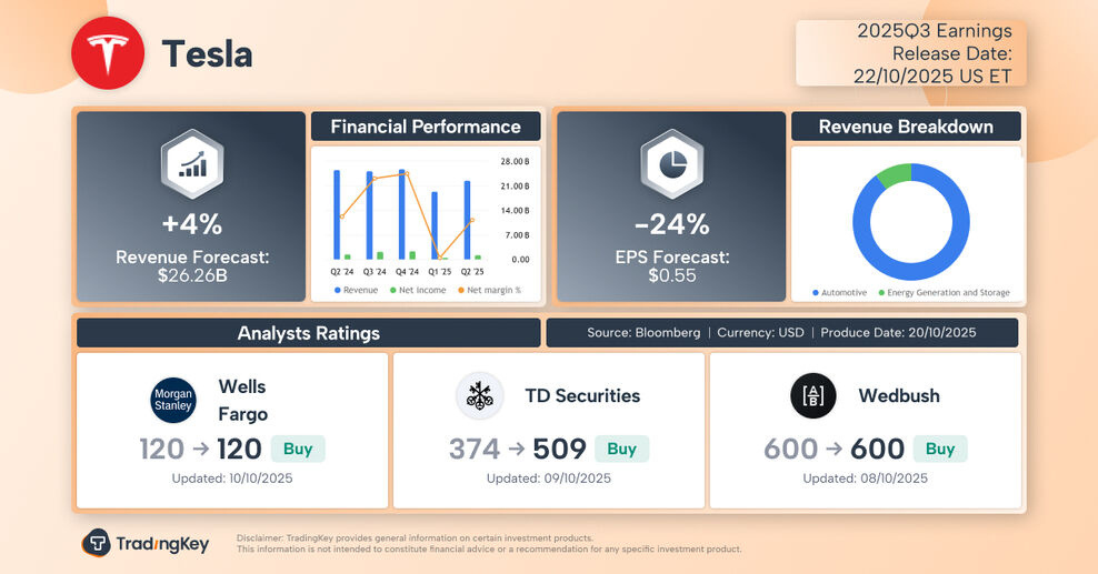 TradingKey - Riding on improved market sentiment and Elon Musk’s renewed focus on his role as Tesla CEO, Tesla’s stock has rebounded over 85% in the past six months — the strongest recovery among the Magnificent Seven. Tesla is set to report its Q3 2025 earnings after market close on October 22, and while record-breaking delivery numbers may impress, Wall Street remains cautious about its strategic pivot toward AI, robotics, and autonomous driving.