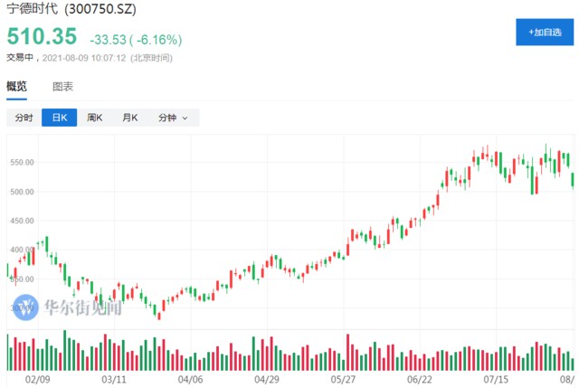 宁德时代早盘跌超 6%,比亚迪跌近 5%。