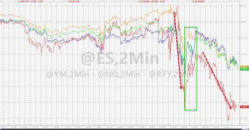 截至收盘,标普大盘和纳指均止步五连涨,此前曾连续两日创历史收盘最高,道指也止步四连涨。标普收跌 0.6%,报 4470 点,道指收跌 0.5% 或超 192 点,报 35213.12 点,纳指收跌 0.6%,报 14945.81 点,罗素 2000 小盘股指数跌超 1%,此前曾连续四日跑赢大盘。