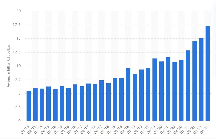 另外在硬件端,比起前兩者,市場對硬件端的關注熱度沒有那麼足,但為微軟帶來的營收貢獻不容小覷。微軟近幾年以 Windows、Bing 搜索廣告、Xbox 系列產品和 Surface PC 為重點方向的 “更多個人計算” 業務營收維持在 100 億美元以上的水平。2022 財年 Q1 如果實現加速增長,那必然為微軟業績錦上添花。