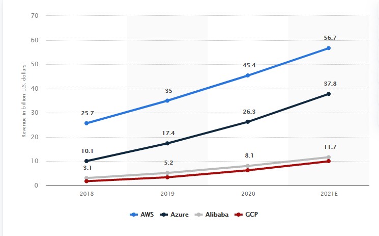 華爾街金融機構 Wedbush 曾預測,在 “雲端” 的企業工作量今年將從 40% 上升至 2021 年底的 45%,到 2022 年這一數字將上升至 55%。